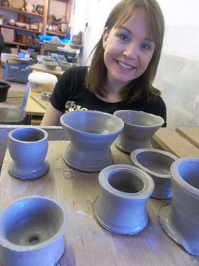 Star-potter prize goes to Verity, (pictured left) who not only organised their pottery trip to Eastnor, but also took to the wheel like a duck to water!
