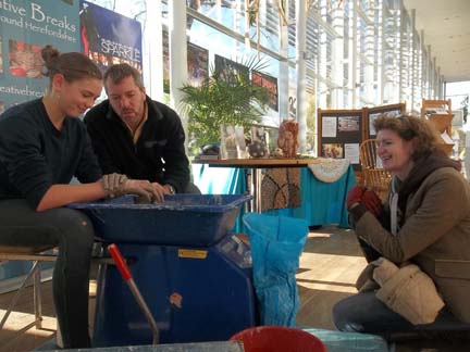 I was there on Sunday morning with my potter’s wheel inviting visitors to sample the delights of making a pot on the wheel. I had a steady stream of takers and the photos can be viewed on our facebook page.