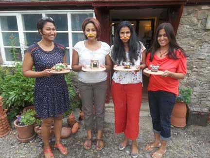 These ‘guys’ (nice use of comedy moustaches!) chose Eastnor Pottery to celebrate their friends 40th birthday. The ladies made some creative pinch pot sculptures, including a multi-coloured dinosaur, dog and monkey – which will look stunning once they’ve been fired and glazed.