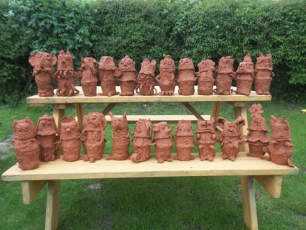 These fabulous terracotta figures were made by the children at Elmbridge First School in Gloucester. I spent a lovely couple of days in April building a mud sofa with YR1 and making these masterpieces to hide in amongst the undergrowth in their expansive forest school area.