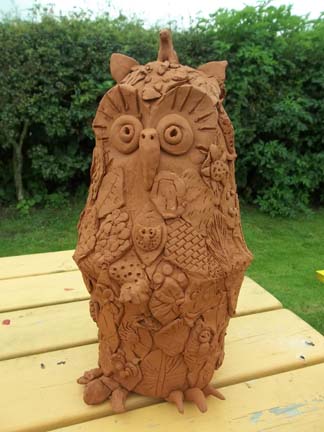This stunning collaborative terracotta owl was made by parents and children at Bosbury Primary School in Herefordshire. It will be delivered in time for the new term. Good work everybody!