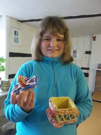 Box of delights Posted on March 2, 2013 by Jon Bethan dropped by over 1/2 term to collect her ‘box of delights’ she made here at Eastnor Pottery in December. Nice work Bethan! Posted in children, school holiday tagged with children, fired examples, herefordshire, school holiday