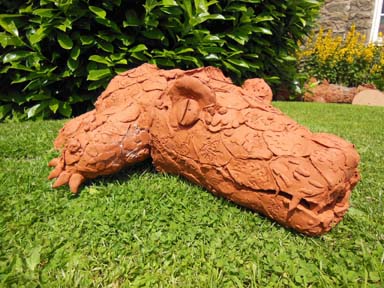 Here’s the Collaborative terracotta crocodile made by the children at St Peter’s Primary School in Bromyard.