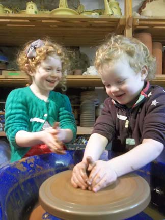 Youngsters from the three counties and beyond had great fun during 1/2 term making bird baths on the potters wheel and modelling feathery clay sculpture. Some of the children came bearing gifts. Big thank you to Raffie for my space rocket he made. (see below)
