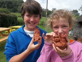 A couple of young potter’s collect their terracotta ‘convertibles’ made at our regular children’s workshops in the recent 1/2 term.
