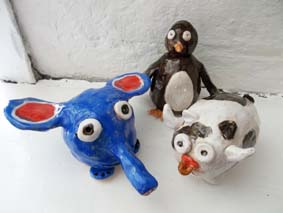 These fantastic creatures were made by three friends who attended one of our drop-in pottery sessions earlier this summer. The young ladies used the pnch-pot technique to fashion the clay before painting their creations in coloured slip. A few weeks and a couple of firings later they were ready for dispatch.