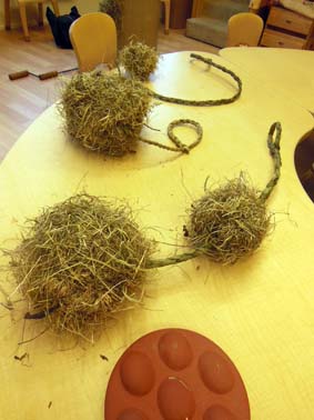 Annemarie presented the children, staff, parents and volunteers with these rather lovely hayballs as well as the chance to make lengths of hay rope.