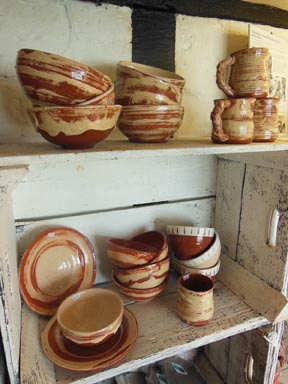 Featured left are a selection of earthenware bowls, mugs and jugs on sale from the Pottery for as little as ten pounds.