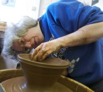 Here, Gillian is attempting a tagine at one of our regular potter’s wheel workshops held last weekend. Over the years Gillian has made all sorts of pottery items including mugs, plates, bowls and goblets – all of which she uses at home.