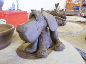 Everybody engaged with the clay at their own level creating a haul of pottery models and sculpture as diverse as you like. The youngest members of the family created clay monsters, butterflies and snails whilst the adults excelled on the potter’s wheel.