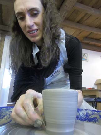 There were a couple of secret potter’s in amongst Hannah’s pottery hen party on Saturday. One of the girls had studied ceramics at Harrow – a college renowned for it’s pottery wheel prowess. Terri certainly didn’t disappoint when she took her turn on the wheel demonstrating the art of pot making, once learnt, never leaves you.