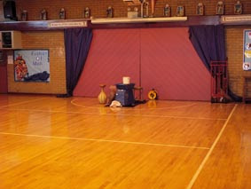 Pictured here, my lonesome wheel in the expanse of the empty hall.