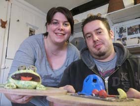 Kelly and Kevin spent a creative and industrious morning at the Pottery making clay models and trying the potter’s wheel. These frog and pacman inspired creations will look excellent once they have been fired and glazed, truly reflecting the care and effort lavished upon them by the visitors.