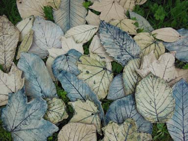 An Autumnal collection of ceramic leaves made by the children at Staunton & Corse Primary School in Gloucestershire.