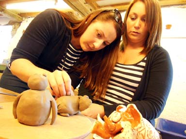 They created some detailed pinch-pot models and took them away at the end of the session to be treated with a coat of pva glue and acrylic paint at home.