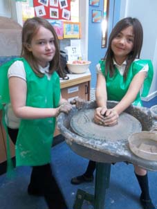 Ms Ryder and myself thought it would be fun for the 60 yr5 pupils to sample a kick wheel instead of the usual electric machine I usually travel with. One child could power the wheel while another handle the clay on the wheel head – then swap over.