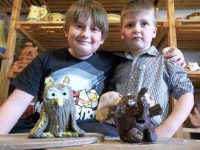 Max, his school friends and family celebrated his 5th birthday at Eastnor Pottery on Saturday. The gang opted for our ‘colourful critters’ party option making and painting animals and beasties. Pictured here Max (right) with Uncle Joe and thier owl & elephant combo (there should be a poem?!)