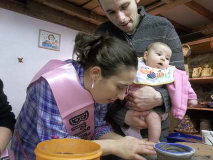 The ladies were at the Pottery as part of Rachel’s hen party celebrations. Eight week old baby Niamh was a little on the young side to be left at home, so she came chaperoned by dad and joined in the fun!