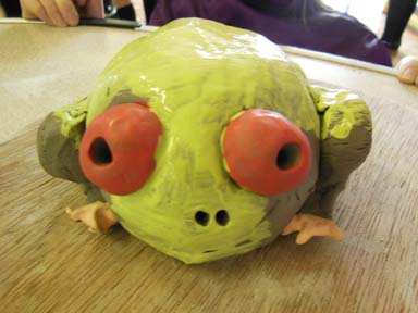 Great to be back at Bishops Cleeve Primary School in Gloucestershire. Spent the day working with YR6 students making critters from the rain forest. Loving this partly painted, bug eyed tree frog.