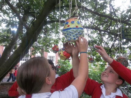 Made it to the arts spectacular ‘Starfest’ at Stanley Rd Primary last Friday. The staff and children really go to town on this annual celebration of all the children’s art work. Remember the sculptural globes Yr3, 4 & 5 made when I visited beginning of June? Well they were all beautifully installed in a giant cherry tree in the school grounds – they looked amazing! There were lots of other art works on show and a host of performances on the school playground. The event was well supported by families and the local community with tours of 30-40 people setting off around the sculpture trail every 10-15 mins.