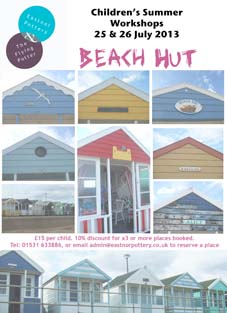 Our fabulous and fun 1.5 hr pottery sessions for kids take place 25 & 26 July 2013 and are entitled Beach hut. Places cost £15 per child with a 10% discount for x3 or more places booked. 9-12yrs 11.30am on Thursday & 4-8yrs 11.30 or 2pm on Friday. Older or younger siblings are welcome either day! Please email admin@eastnorpottery.co.uk or Tel: 01531 633886 to reserve a place.
