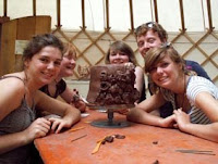 We’ve also hidden some ‘discovery pots’ on the upper and lower terraces. Each pot contains a ball of clay, inviting the finder to look around and model something based upon their observation/interaction with the environment. At the end of the day we collect the offerings – our intention to fire and exhibit photos on our blog at some point in the future.