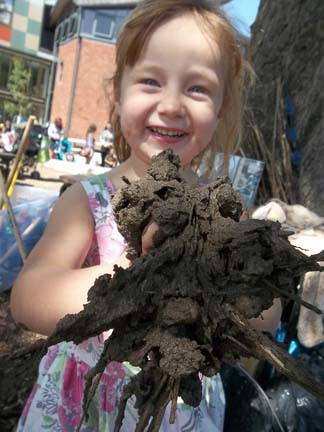 The arrival of the the school holidays heralded a new, even more messier approach – namely mud sculpture outside on the terrace. The young people worked alongside their significant adults and the collaborative atmosphere has been alive with animated conversation. So many benefits for language development, social interaction and hands on, learning about natural materials. Oh, we had a shed load of fun too!