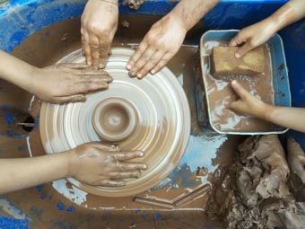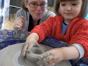 Great moonbeams session at the Midlands Arts Centre on Tuesday. This was a FREE free flow, no booking required, session with parents and young children trying their hand at the potter’s wheel. Check out this beautiful series of photos taken by project manager Janette Bushall – prams, pots @ babies @ mac – nice!