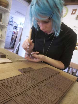 Lottie attends to the first batch of 3500 Mud Runner medals due for delivery in time for the race in Oct.