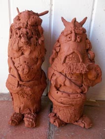 These fearsome terracotta warriers were made by 90 Yr 3 children from Palfrey Junior School in Walsall. We’ve lined them up in pairs for their portraits and will re-unite them with their makers in the Autumn term.
