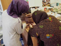 The children in small groups and individually, came out to experience the potter’s wheel, the parents taking obvious delight in watching the youngsters feel their way around the spinning clay.